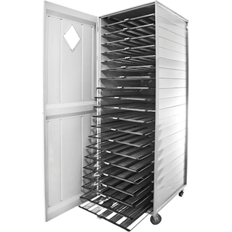 Los armarios para el pan son estructuras específicas para almacenar varias bandejas apiladas verticalmente, como cajones.